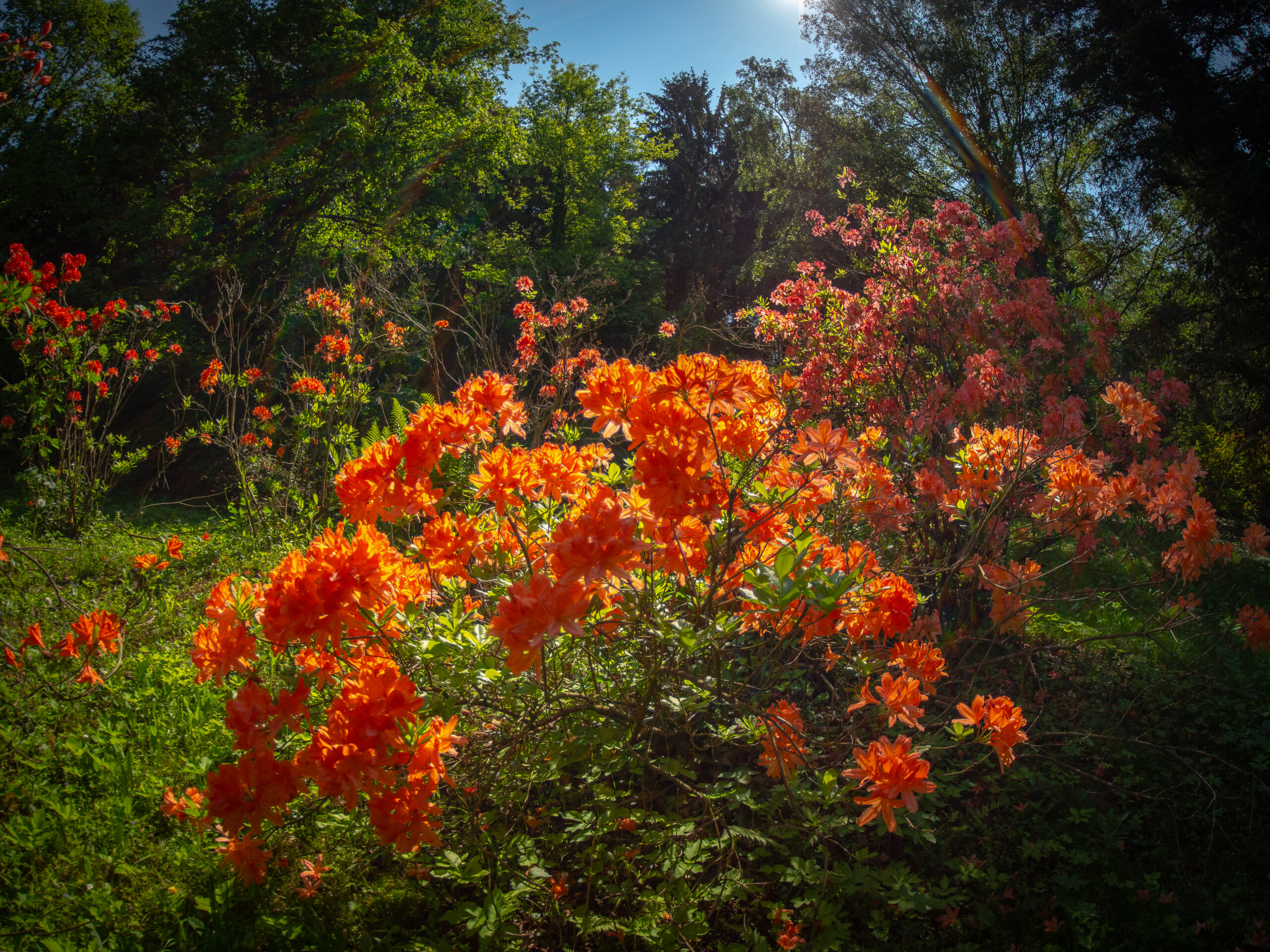 m a fehér, a piros és a lila számtalan árnyalatát is felfedezhetjük még. A pompás „rododendronszurdokban” szigorúan védett növényeket, s számos fenyőfajt is találhatunk.