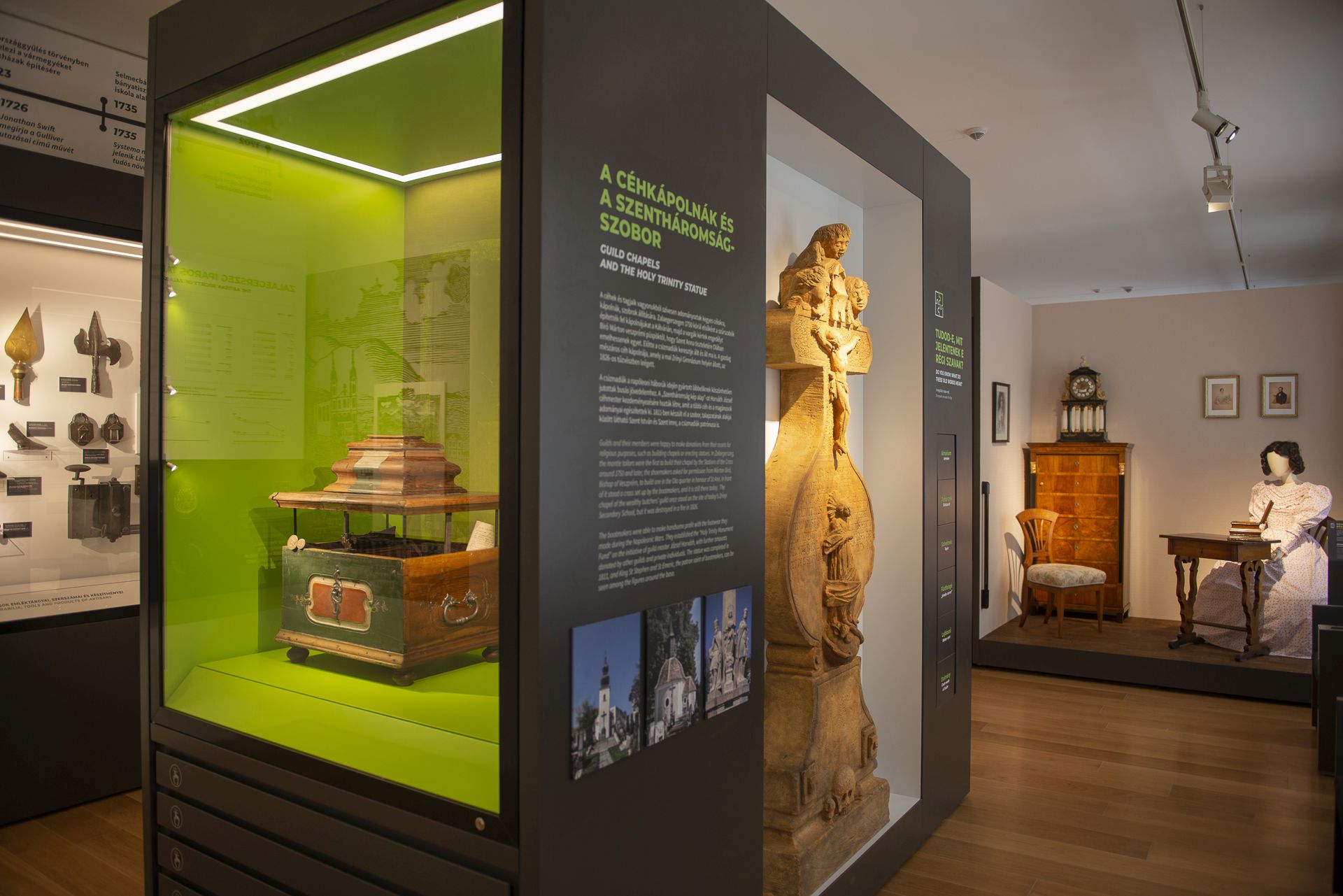 A belvárosi Göcseji Múzeum Elődeink élete című várostörténeti kiállításán humoros animációk, interaktív játékok segítségével fedezheted fel Zalaegerszeg évszázadokon átnyúló történetét. Itt nem igaz a mondás miszerint „mindent a szemnek, semmit a kéznek”. Emellett helyi kötődésű művészek kiállításai is várják a kultúra és művészet iránt rajongókat.
